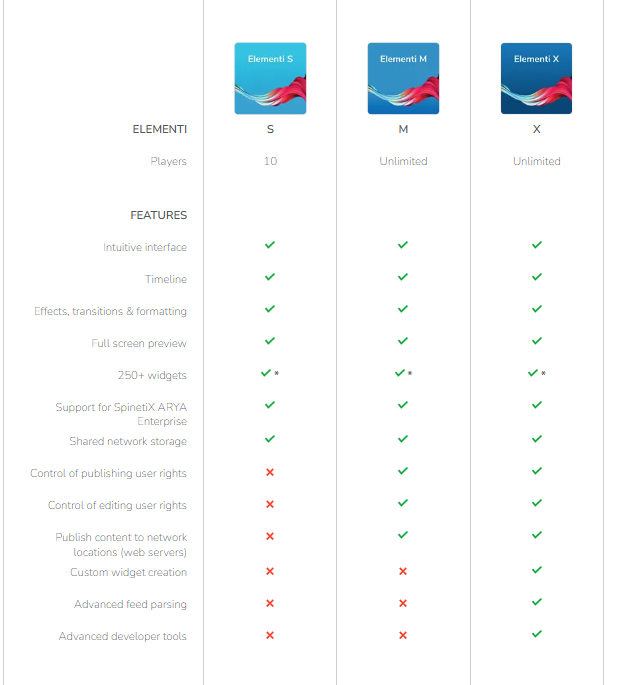 - Elementi X contient toutes les fonctions de la version M avec une section "développeur", pour les utilisations les plus exigeantes